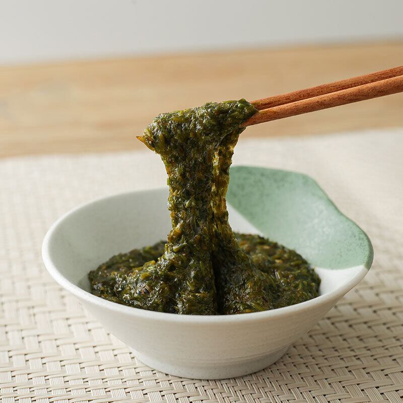 男鹿の海を知り尽くした海風丸の漁師みずから、男鹿の海から刈り取り、手作業で固い茎・太い茎を取り除き、食べやすく、やわらかい食感になるよう丁寧に処理しています。パッケージの中には、磯の香りと、栄養と、漁師の愛情が詰まっています。