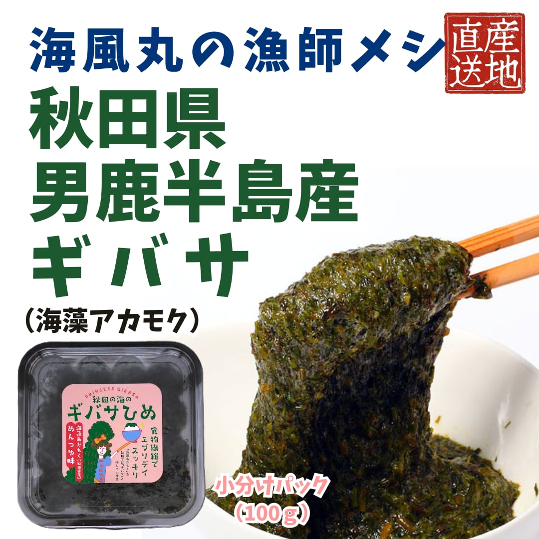 秋田県男鹿半島 海風丸の漁師メシ 『 ギバサひめ(めんつゆ味)100g 』× 4パック( 秋田県男鹿半島産 ぎばさ 海藻アカモク 冷凍 )