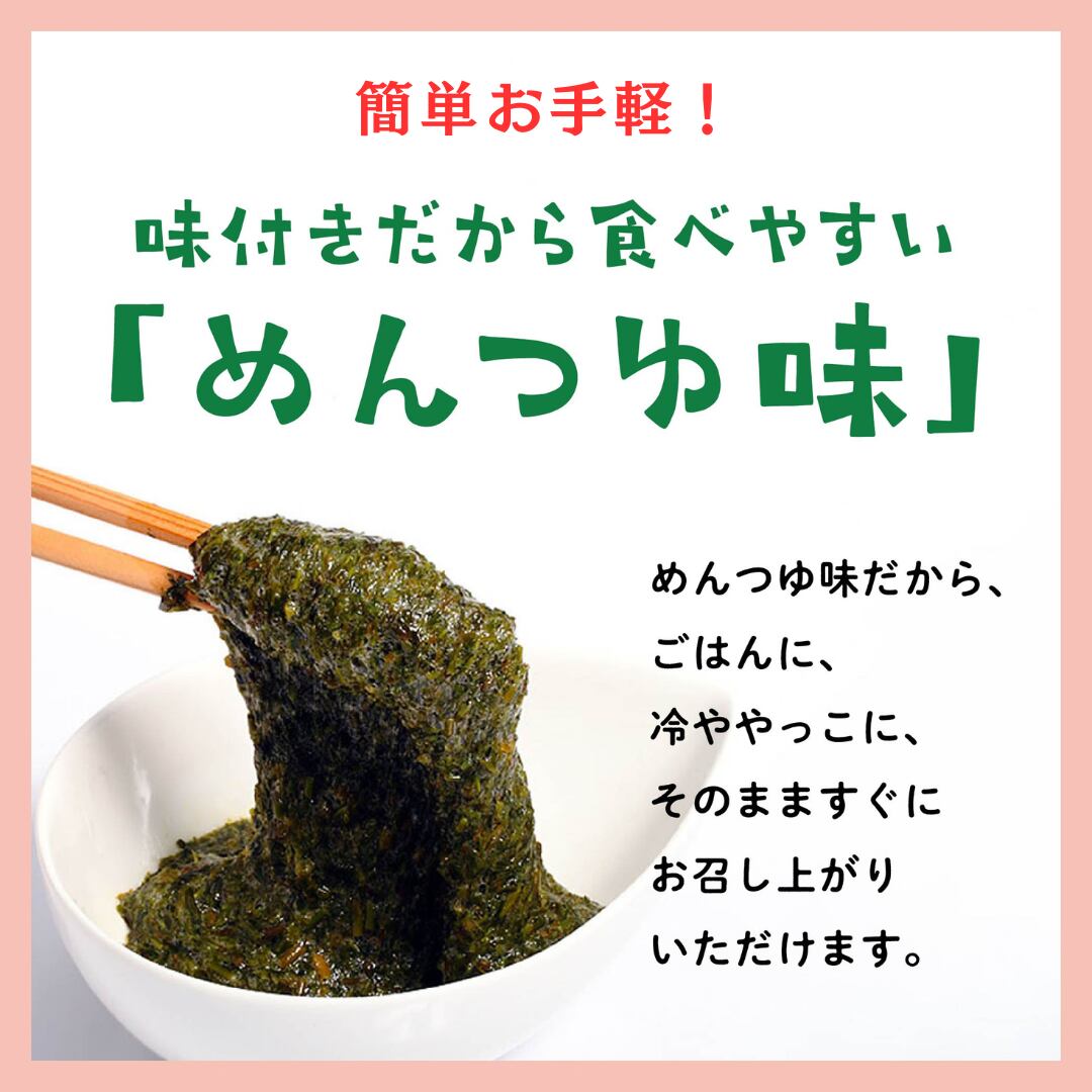 海藻アカモク(秋田県産)、つゆ(しょうゆ、砂糖、食塩、かつおぶし、こんぶ)/調味料(アミノ酸等)、酸味料、(一部に小麦・大豆を含む)