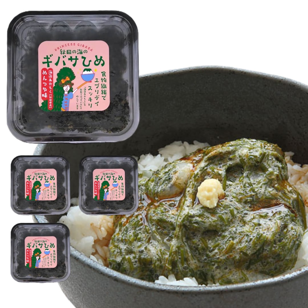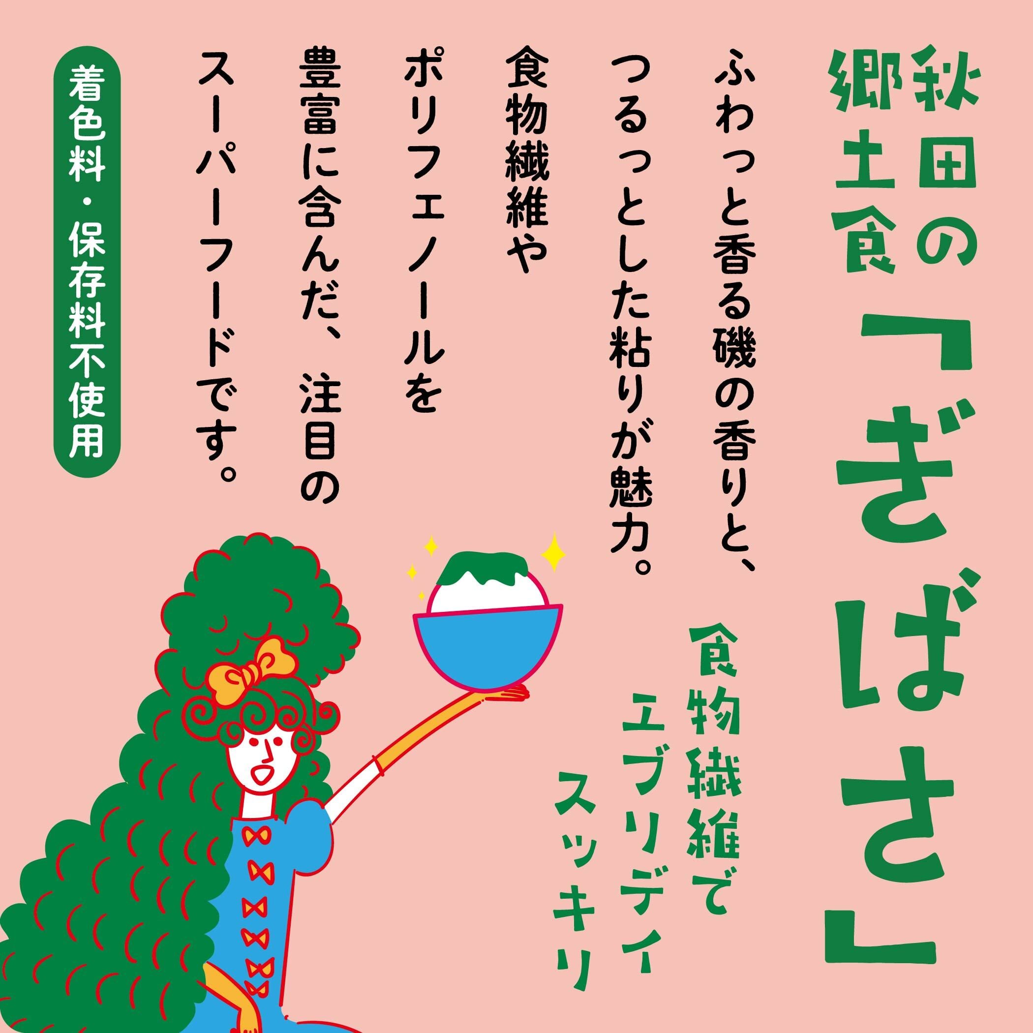 昔から秋田の食卓で親しまれている海藻アカモクを、秋田では昔から「ぎばさ」と呼ばれています。強い粘り気とコリコリ食感が特徴で、ポリフェノールや、フコキサンチン、ミネラル類、食物繊維を豊富に含み、体の調子を整えるのに役立つだけでなく、美肌効果も期待できる機能性の高い商品として注目を浴びています。